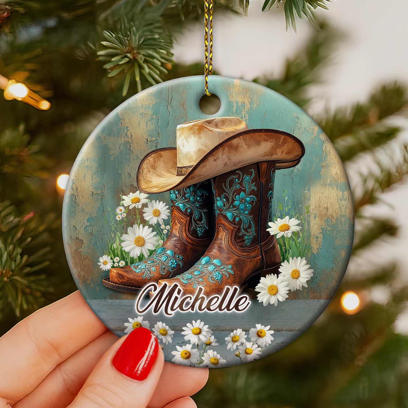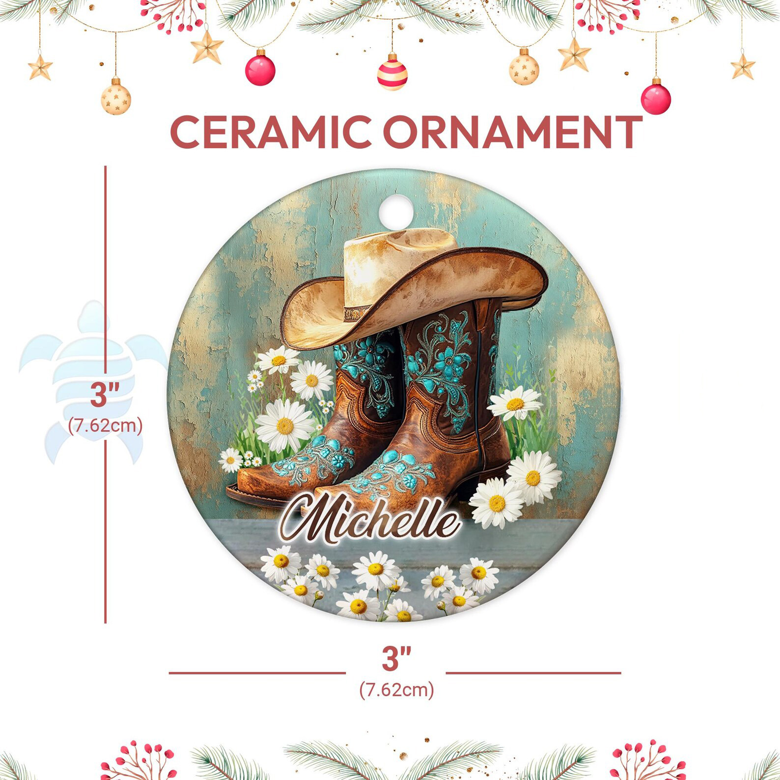 • Custom Name Cowboy Boots Christmas Ornament, Ceramic Double-sided Western Tree Hanging Holiday Decor, Christmas Gift for Cowboys/Cowgirls/Horse Lovers