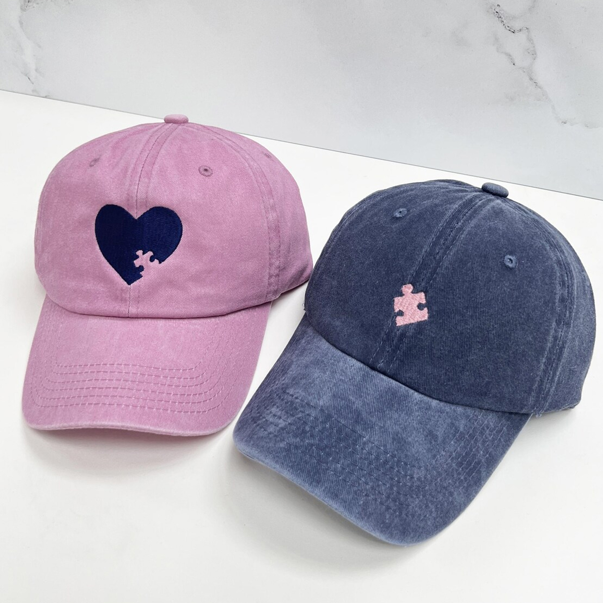 Embroidered Heart & Puzzle Design - This baseball cap features a delicate heart/puzzle piece embroidery that symbolizes connection and unity, finished in a vintage trucker style that feels timeless and easy to wear.