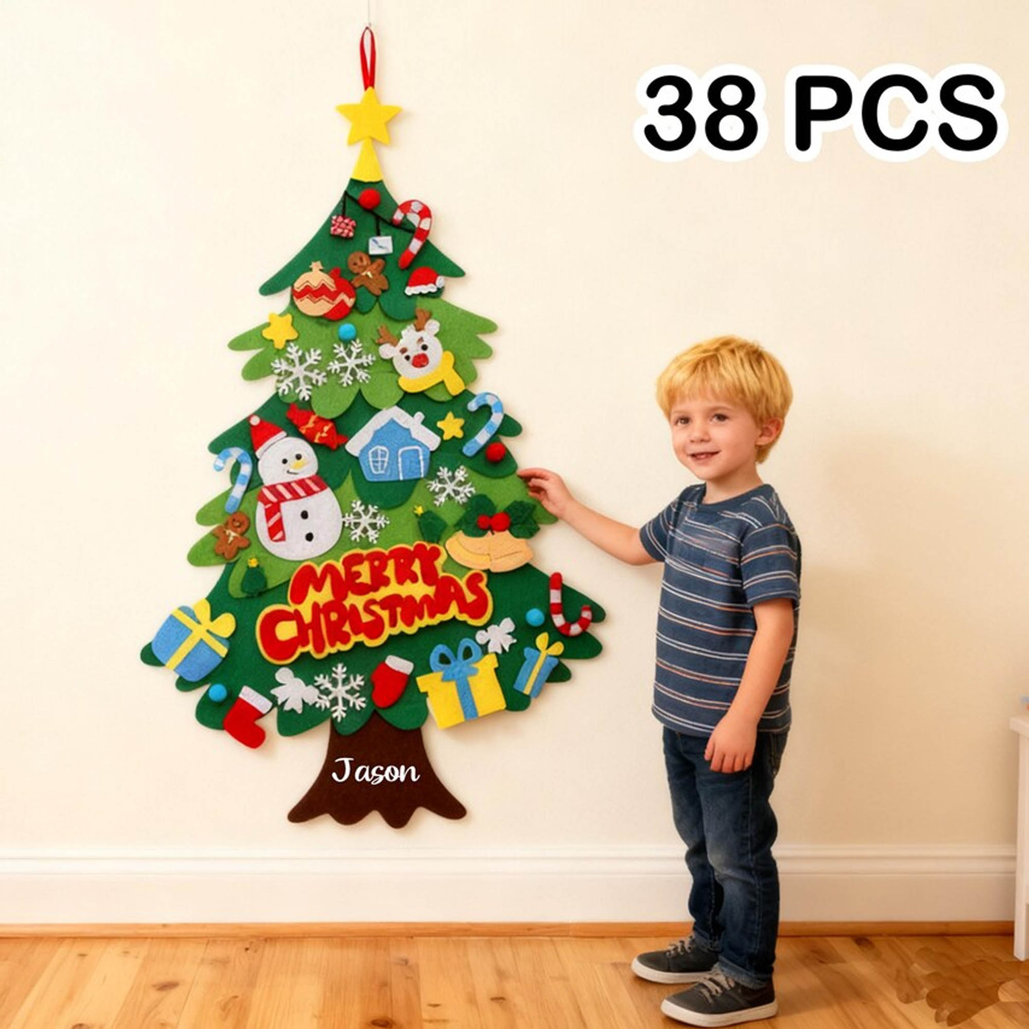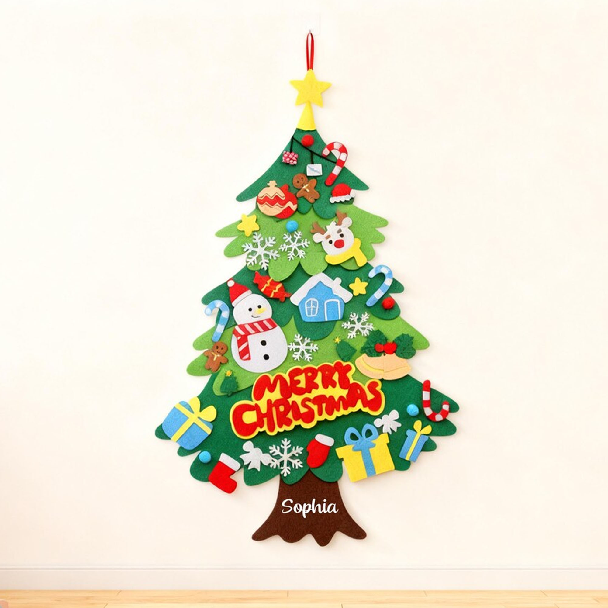 • Personalized Name Cartoon Christmas Tree Wall Decor Set, Felt Hanging Christmas DIY Craft Kit, Xmas Party Favors, Christmas Gift for Toddlers/Kids