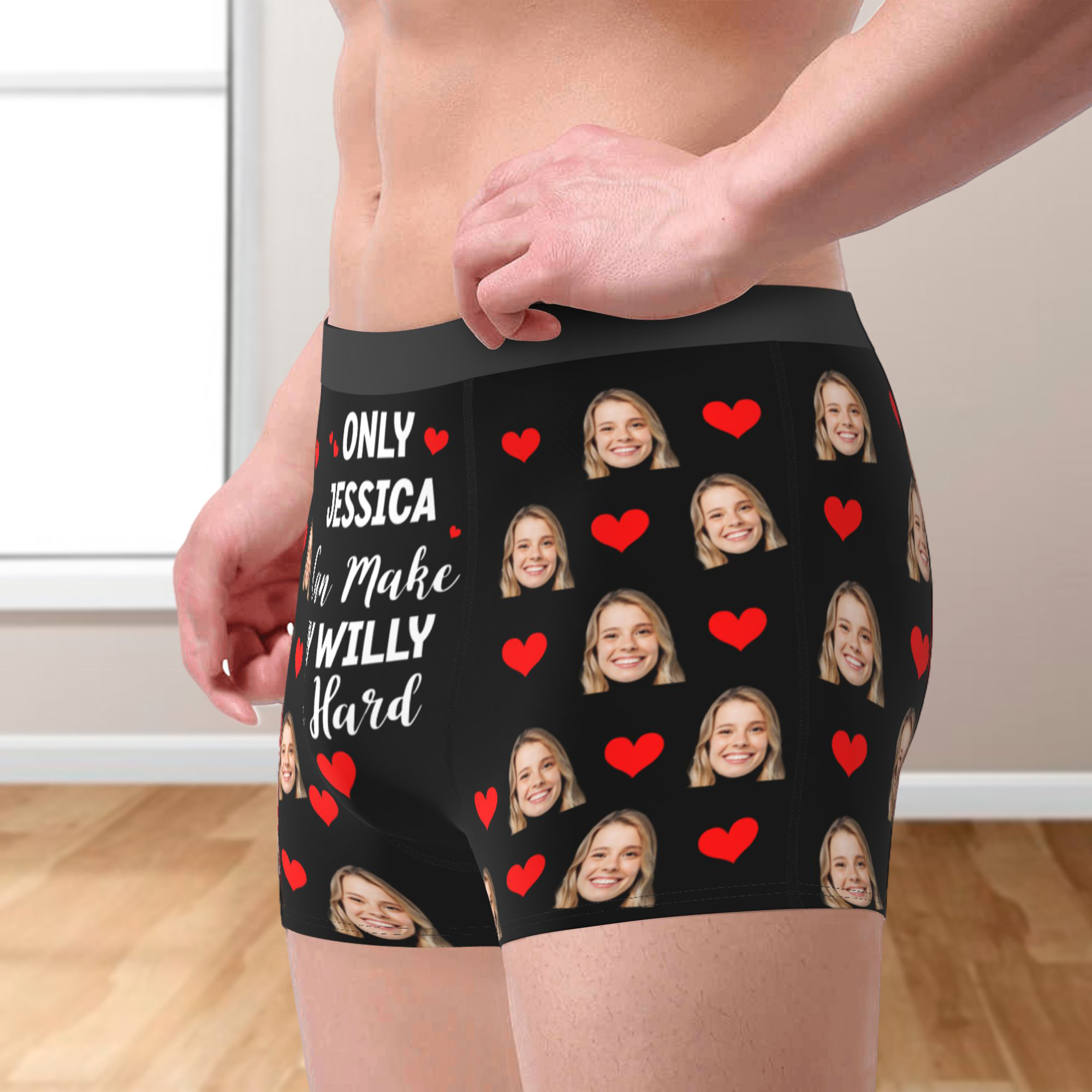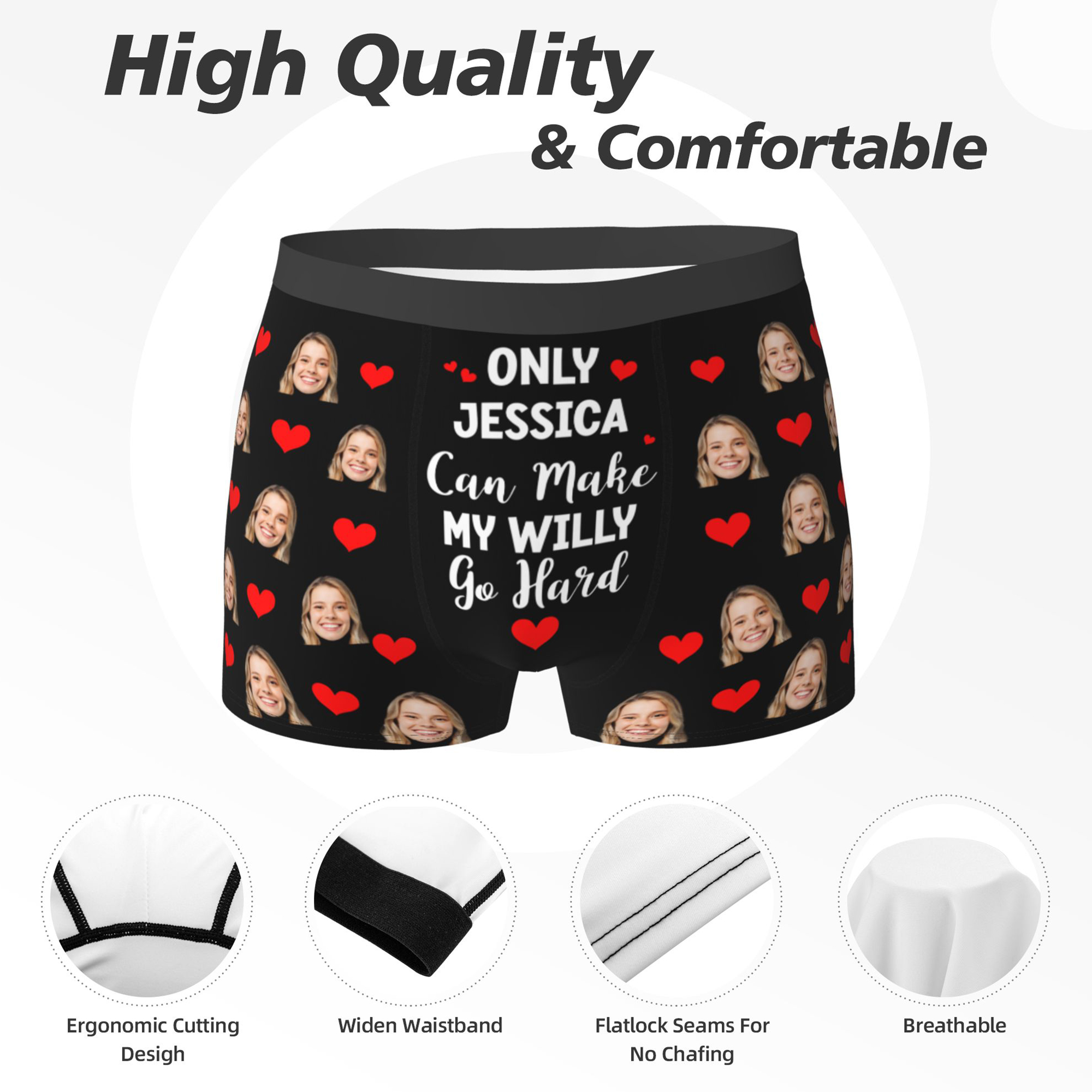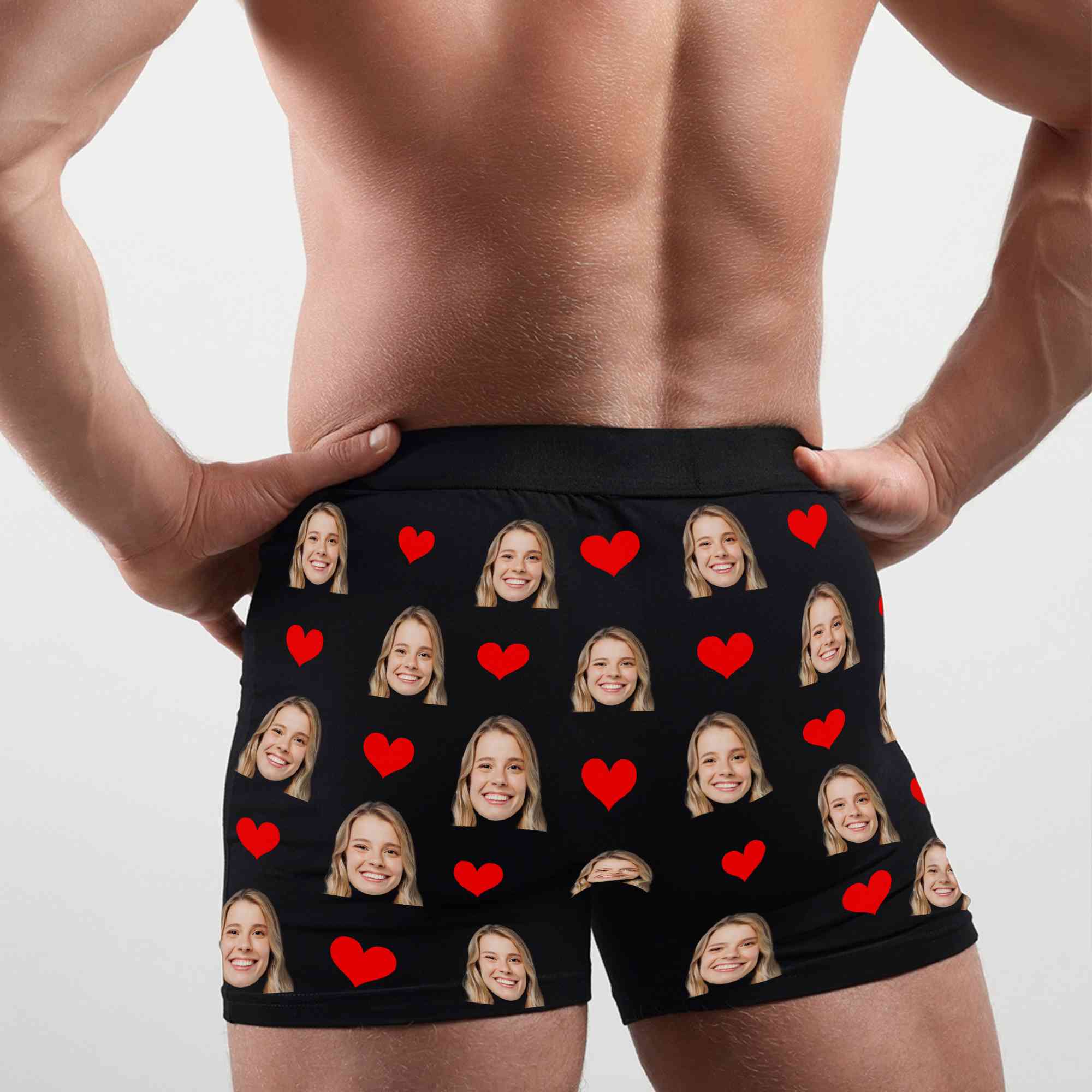 Personalized Name & Face Photo Heart Design Funny Boxer Briefs, Men's Underwear, Valentine's Day/Anniversary/Wedding Gift for Husband/Boyfriend