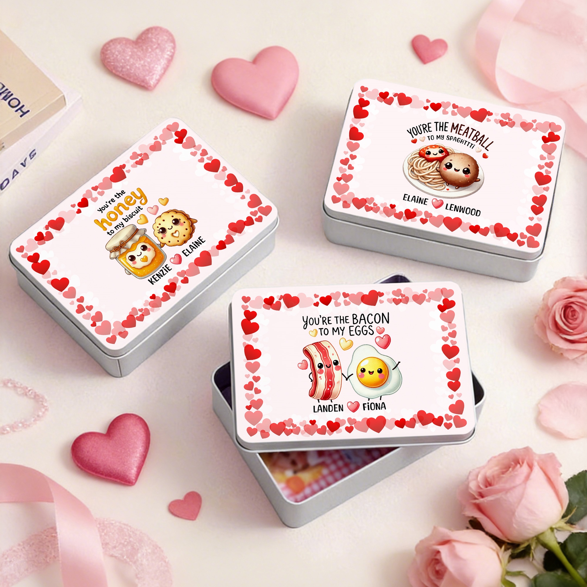 Personalized Names Perfect Match Foodie Treat Tin with Lid, Biscuit Box, Tinplate Container, Anniversary/Valentine's Day Gift for Her/Him/Couples
